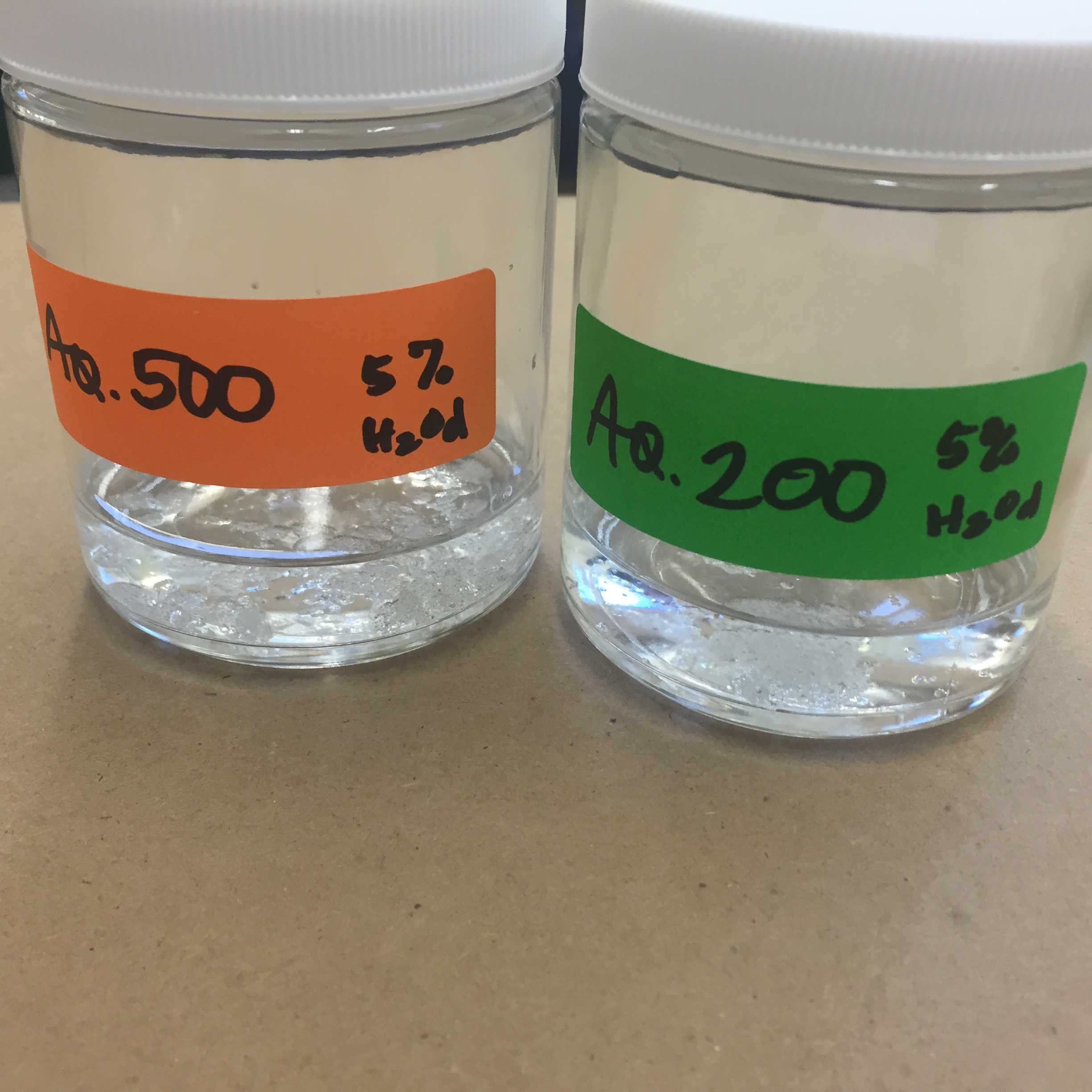 2015-03-27 15.42.48 5% w/v solutions of Aquazol 500 and 200, swelling in distilled water. Dartmouth/NEGBW workshop March 2015. Like Loading...