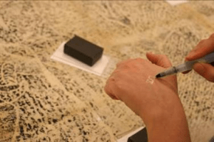 remRubel reactivating wsp/mc mix-coated tengujo on back of hand with deionized water. Like Loading...